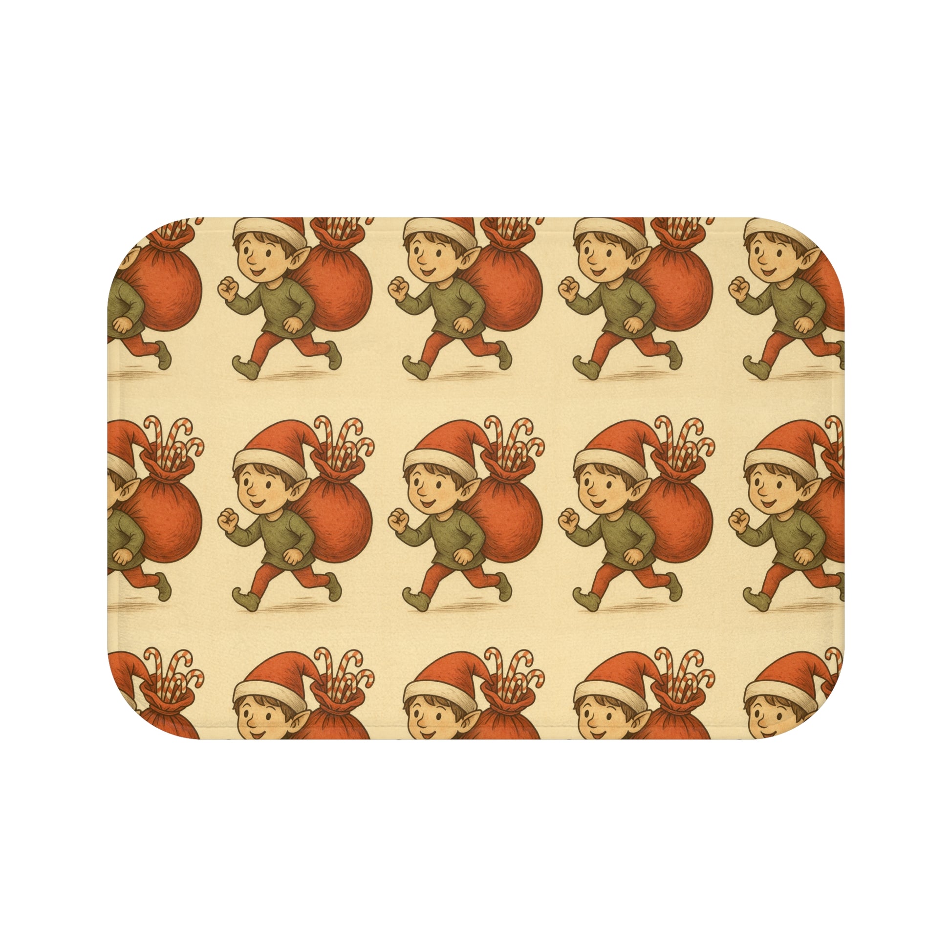 Christmas Elf Bath Mat — Retro Santa Helper Patterned Holiday Bathroom Rug
