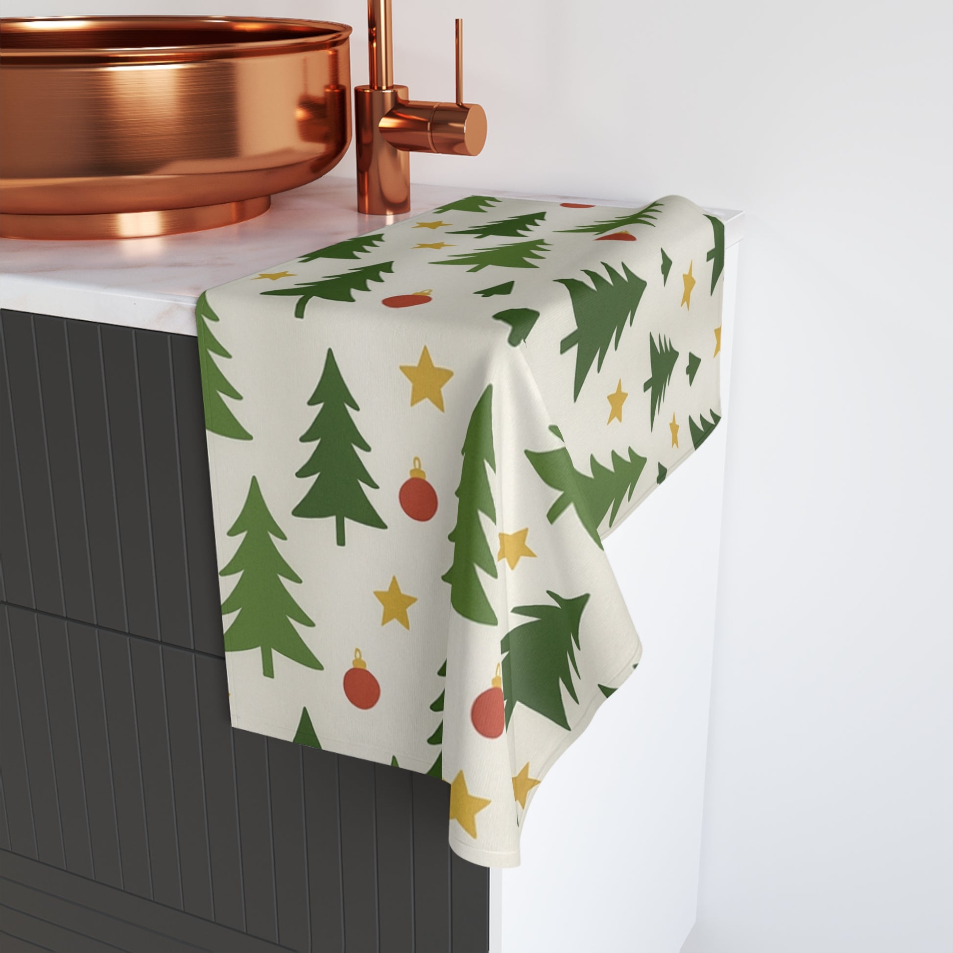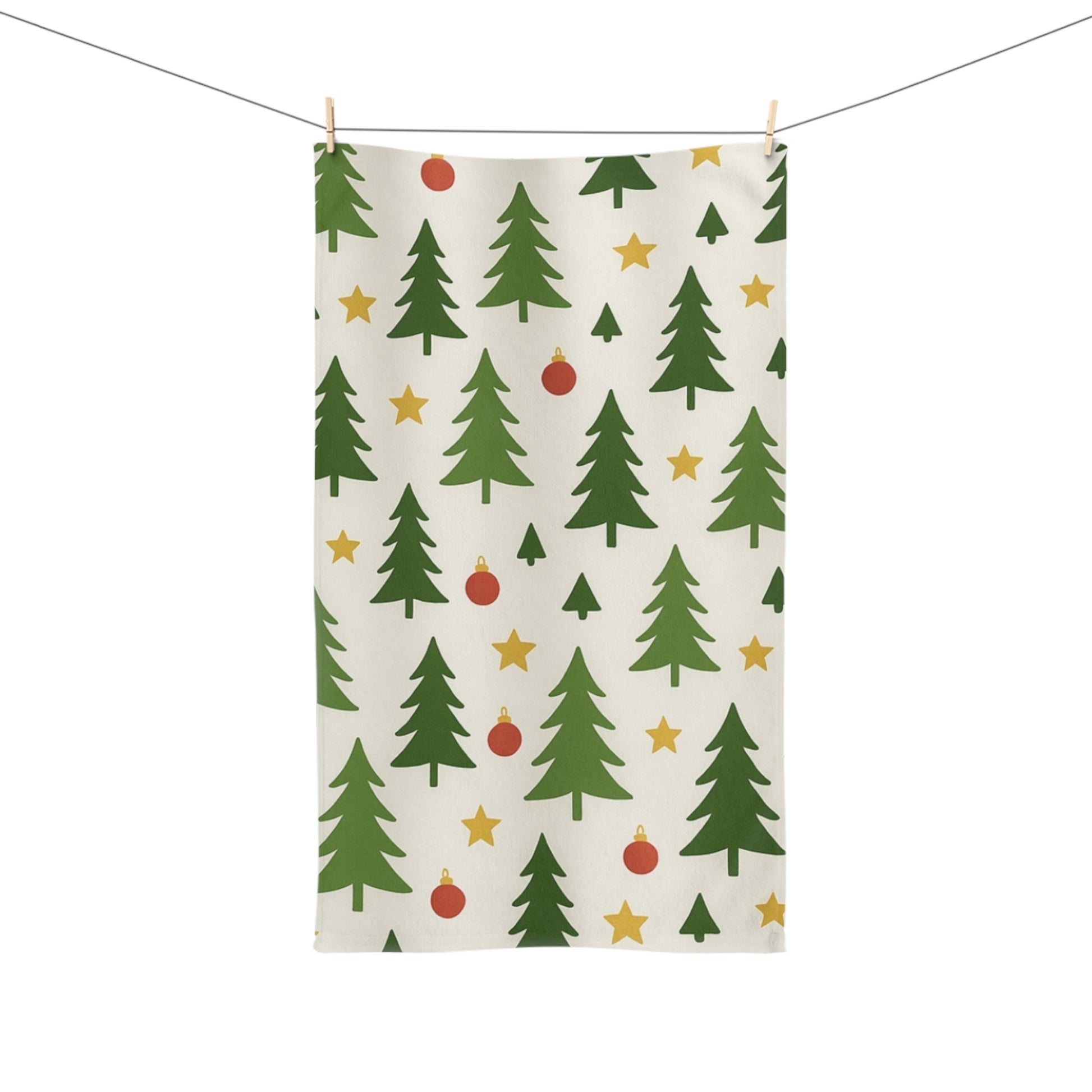 Christmas Tree Pattern Hand Towel — Festive Pine & Ornament Kitchen Towel