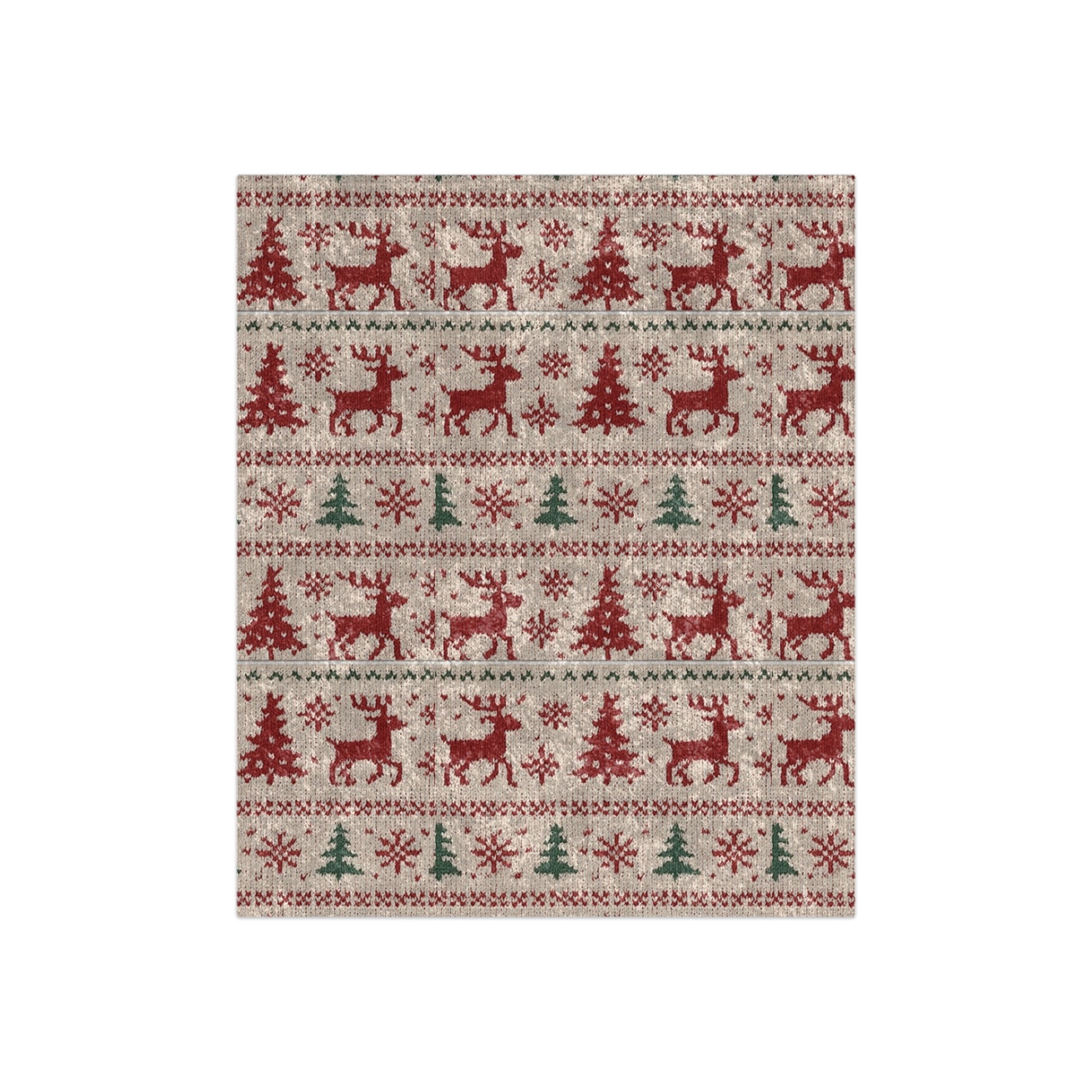 Crushed Velvet Christmas Blanket | Nordic Reindeer Knit Pattern | Cozy Holiday Throw