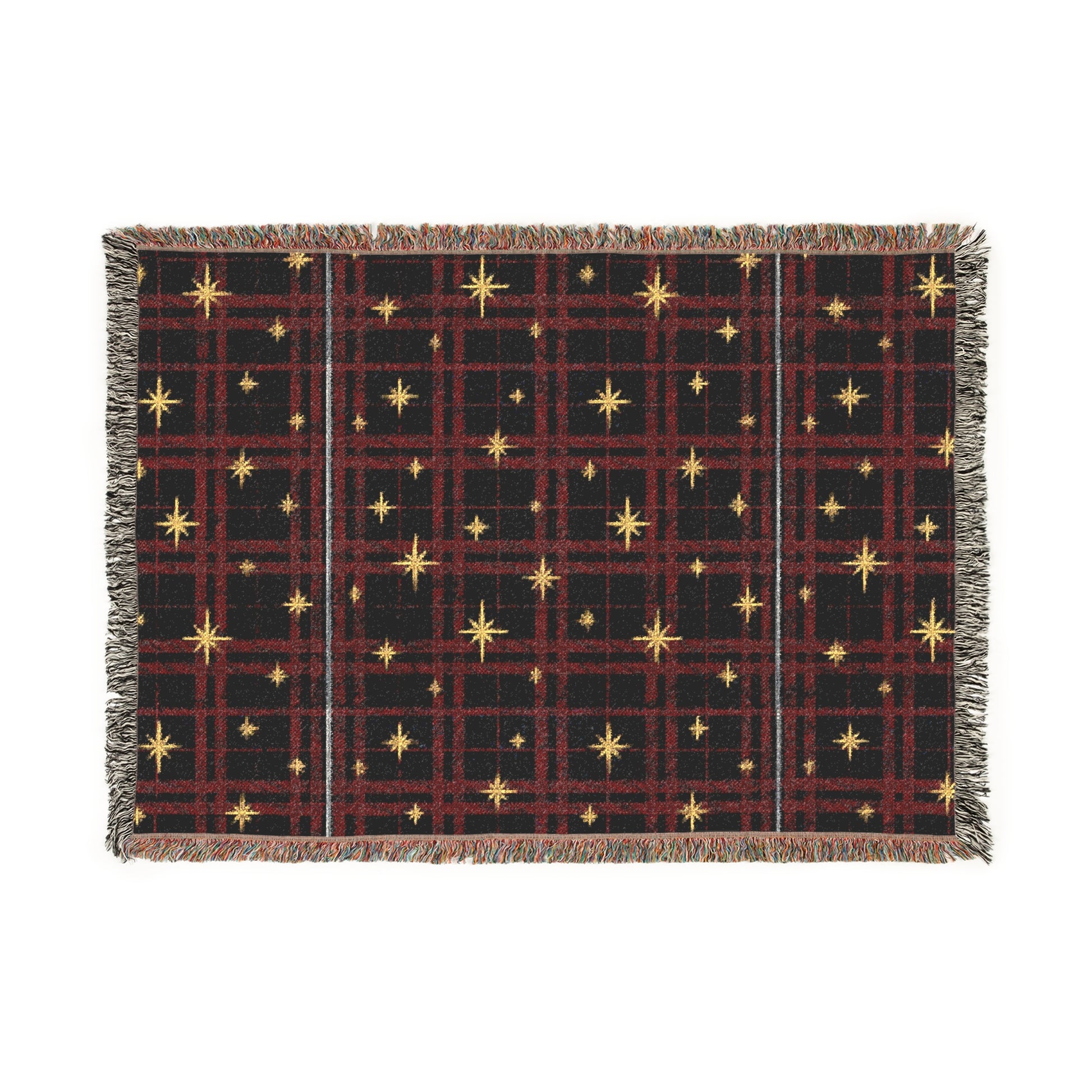 North Star Christmas Plaid Blanket – Navy & Red Holiday Woven Throw